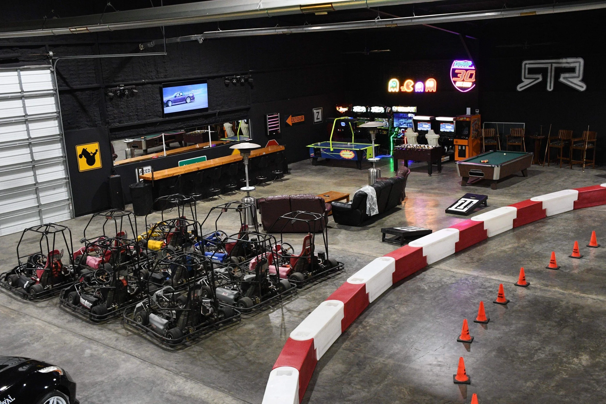 Take on the challenge of oversized electric drift carts on our indoor track.